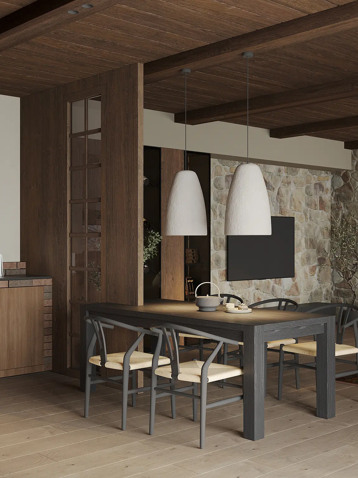 Дом обретает душу там, где интерьер становится продолжением экстерьера. Следуя замыслу архитектора, внутреннее пространство впитало в себя благородство натуральных материалов: матовый блеск клинкерного кирпича и теплоту дерева создают безупречный дуэт. Спокойная, природная гамма и естественные фактуры погружают обитателей в состояние умиротворения и гармонии.