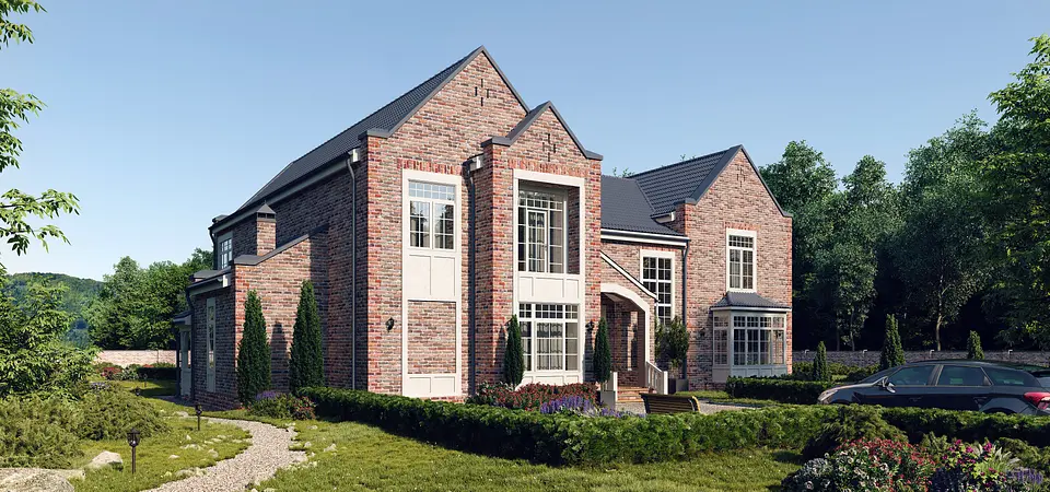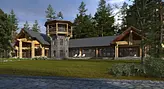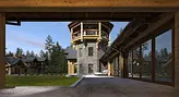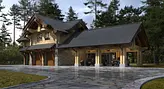 Благодаря массивности строения и использованию выразительных элементов, таких как стропильные фермы (как и в основном доме), стиль можно обозначить как «скандинавский» с отсылками к русскому зодчеству. Для реализации проекта был выбрана технология клееного бруса.