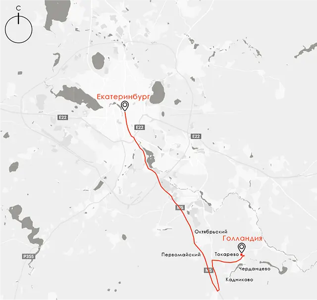 Также рассчитано расстояние от площади 1905 года (г. Екатеринбург) до посёлка Голландия, которое составля ет 42км. Данное расстояние достаточно комфортное, его можно преодолеть в среднем за 50 минут. Этот фактор очень важен, так жители посёлкасмогут, проживая за городом, спокойноработать в мегаполисе.